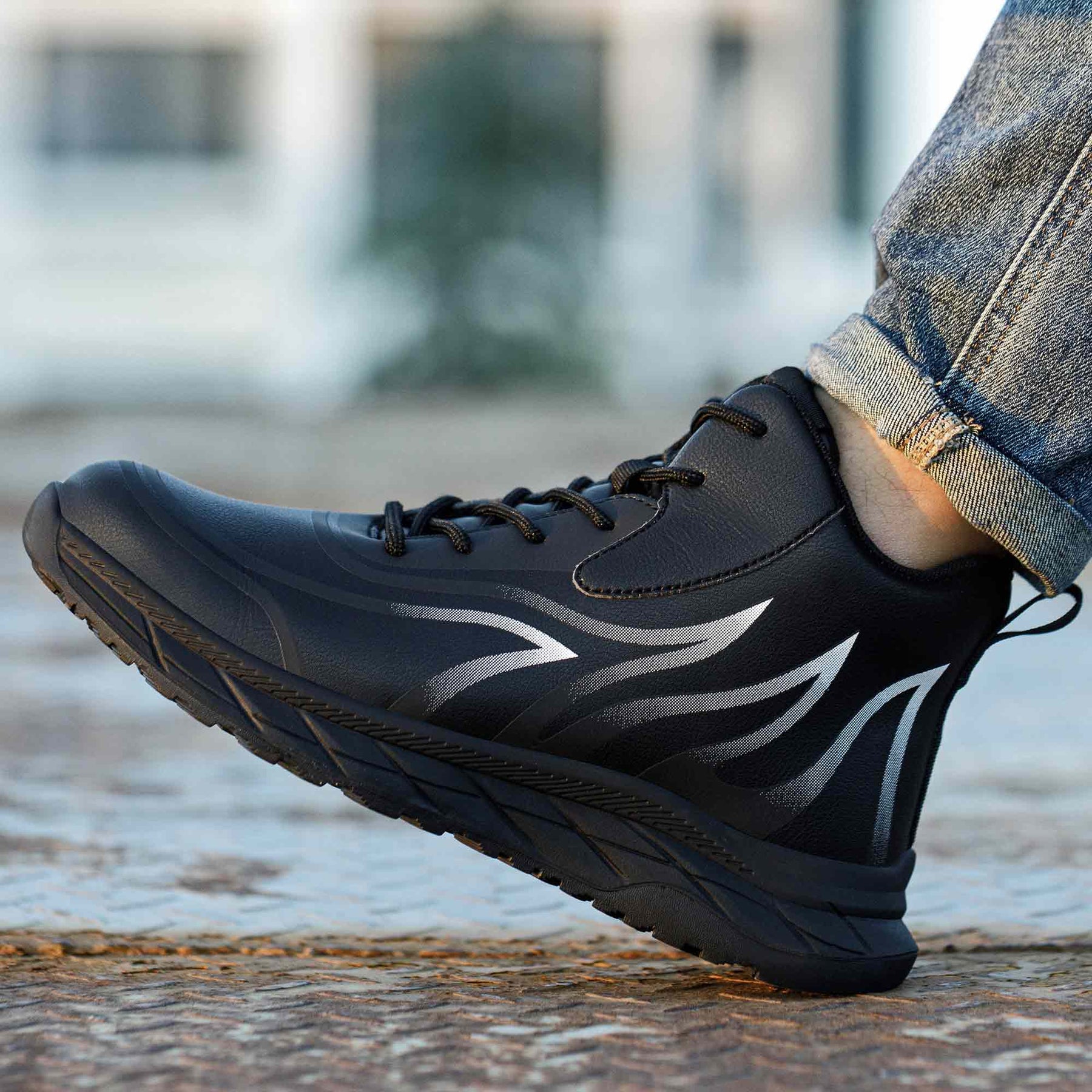 S těmito protiskluzovými pracovními botami můžete pracovat bezpečně i na kluzkých površích. Podrážky těchto bezpečnostních bot jsou měkké, odolné proti oděru a protiskluzové, což umožňuje pohodlnou chůzi při každém kroku.